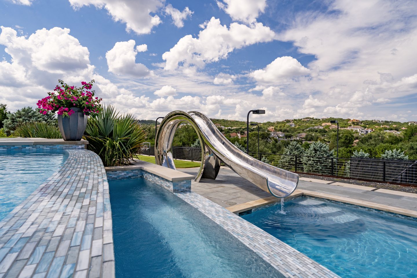 Halo is a cantilevered slide, that offers versatile placement around the pool.